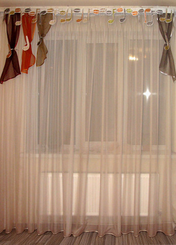 Ламбрекен виготовлений із прозорої органзи з ніжним візерунком.