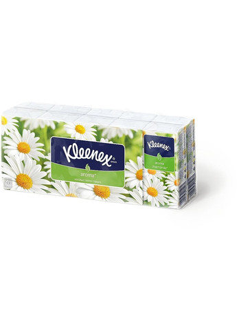 Паперові носові хусточки - це той предмет особистої гігієни, без якого дуже важко обійтися сучасній людині. Вироби такого типу стрімко увійшли у наше життя і ми цьому дуже раді. Марка Kleenex особливого представлення не потребує, адже її продукцію уже оцінили мільйони людей по всьому світу. Вашій увазі представлений набір з 10 упаковок серветок. Такого запасу вам вистачить надовго і в найневідповідніший момент у вас завжди знайдеться хустинка.Ці серветки є тришаровими. Вони мають дуже приємний аромат ромашки. Він здатний позитивно впливати на самопочуття. Виготовлені вироби з м'якого матеріалу, тому вони дуже делікатно очищують, не створюючи на шкірі подразнення. Такі серветки - ідеальний варіант, який піклується про себе і своїх близьких.
