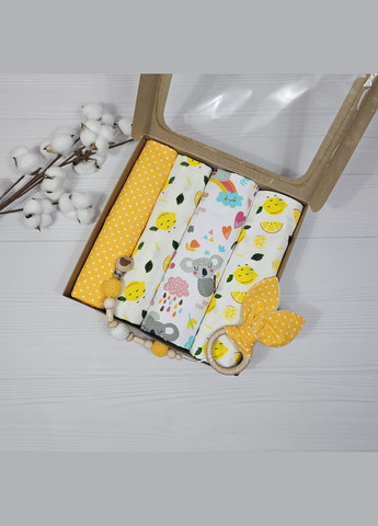 Подарунковий набір для крихітки 💝— це не тільки чудова ідея для подарунка, але й практичне рішення, яке допоможе молодим батькам у перші місяці життя малюка. До набору входить: Муслінова плед-пелюшка 120х120 Багаторазова непромокаюча пелюшка 80x100 Фланелева м'яка та ніжна пелюшка 80х100 Багаторазова непромокаюча пелюшка 50х80 (чудово підійде у візочок та походів до лікаря) ЕКО гризунець"Шурухливі вушка" Тримач для пустушок, гризунів, іграшок тощо