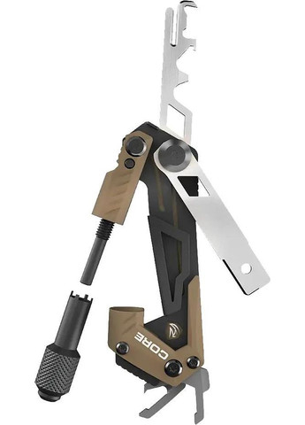 Це мульти-інструмент спеціалізований для платформи 1911 Gun Tool AMP-1911 дає можливість в польових умовах ефективно і безпечно обслуговувати зброю. Мультитул має міцний каркас, в який інтегрується робочий елемент. Повністю конструкція виготовлена з високоякісного титану і нержавіючої сталі. Кріплення дозволяє носити його як на поясі, так і чіпляти на стропи MOLLE та інші подібні поверхні. Мультитул містить: - Клинок ножа в форматі Drop point з отворами для полегшення. - Пуансон (вибивання) - Ударник на тильній частині. - Накидний ключ в профілі руків'я в форматі 1911 Government / Officer (по обидва боки конструкції кожен). - Скребок суміщений, який може використовуватися як вкладка, а також має відкривачку для пляшок в підставі. - Крюк з інтегрованими накидними гайковим ключем (4мм, 5мм, 1/4 ", 5/16"). - Каркас з кріпленням і розкладною динамічною викруткою, всередині нього міститься блок з шестигранниками (0,028 ", 0,035", 0,050 ", 1/16").