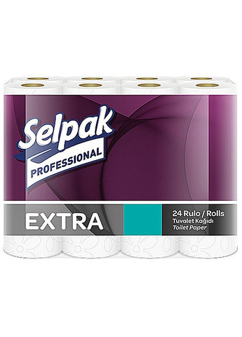 Туалетний папір Selpak (Селпак) Professional Extra - якісний, підходить для гігієни дітей та дорослих. Основні переваги: м'який, але підвищеної щільность з мікротисненням на кожному шарі паперу виготовлений ​​з целюлози виключно листяних сортів деревини упаковка має зручну ручку для перенесення Зони застосування: санвузли закладів середнього та високого цінового сегменту; санвузли офісів Характеристики Кількість шарів: 2 Кількість в упаковці: 24 рулони Довжина рулону: 22,3 м Виробник: Selpak, Туреччина.