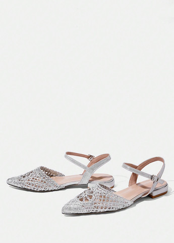 Модні жіночі сріблясті туфлі Styleloop на високих підборах. Ці туфлі з відкритою п'ятою сріблястого кольору з однотонним візерунком. Каблук масивний та плоский. Верх виконаний із соломи. Вони підійдуть для прогулянок на свіжому повітрі та модних заходів.