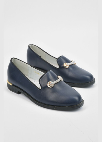 Колір Темно-синій / Склад верха Штучна шкіра / Фасон Лофери / Застібка Без застібки / Декор Стрази