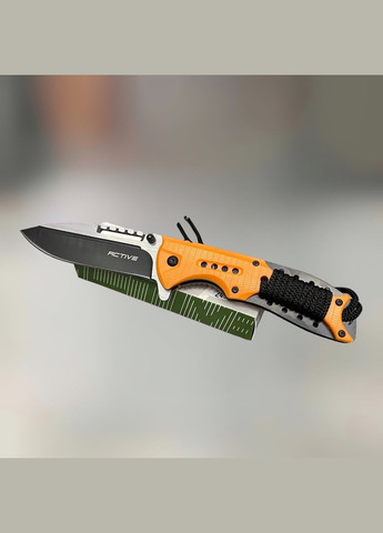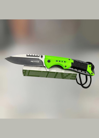 Ніж Active Roper, нержавіюча сталь, складаний ніж для військових* Складаний ніж Active Roper – чудовий вибір для тих, хто любить ходити в походи, на риболовлю або працює в непростих умовах. Особливістю моделі є наявність намотаного на руків'я шнура, за допомогою якого можна сплести темляк або зробити петлю для руки, а отже, максимально знизити шанс загубити ніж. Форма клинка являє собою щось середнє між Drop Point і Spear Point, має класичний вигляд і доповнена поздовжньою вибіркою на бічній частині. Клинок зроблений з нержавіючої сталі 3Cr13MoV, яка вирізняється високими показниками корозійної стійкості, а також простотою заточування різальної кромки. Увігнуті спуски починаються з 1/3 від обуха, що в поєднанні з формою клинка забезпечує ножу хороші колючі та ріжучі якості. Фіксація клинка здійснюється замком Liner Lock, пластина якого має насічку для зручнішого оперування однією рукою. Витягнення клинка відбувається за допомогою фліпера або шпенька. Швидкому виходу сприяє асист у конструкції осьового гвинта. Накладки на руків'я виконані з полімеру, лайнери – сталеві. Є сталева кліпса для перенесення ножа в положенні Tip-down. Наскрізна конструкція дає змогу легко обслуговувати ніж. Під час вилазок на природу цей ніж буде вельми корисним супутником. Характеристики Клинок Довжина клинка: 97 мм Матеріал клинка: сталь 3Cr13MoV Твердість клинка: (HRC) 54-56 Тип заточування: звичайна кромка Фінішна обробка: Black Товщина клинка: 2.7 мм Руків'я Матеріал руків'я: полімер / сталь Колір руків'я: зелений Загальні Механізм фіксації Liner lock Загальна довжина 217 мм Вага 122 г *Ножі, представлені в нашому магазині, не належать до холодної зброї за сукупністю характеристик згідно з висновком НДІ ЕКЦ МВС України.