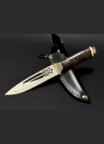 Матеріал колодки — дерево кленовий кап. Матеріал лиття — латунь Матеріал леза — неіржавка сталь марки 40х13. Загальна довжина ножа — 270 мм. Розмір клинка — 150*38*2,4 Ножні в комплекті — натуральна шкіра. Всі наші ножі не є холодною зброєю. Під замовлення вироблене індивідуальне гравіювання.