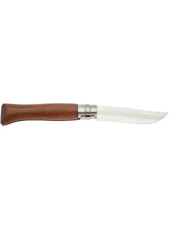Розкладний ніж Opinel №8 Inox Outdoor протистоїть всьому, але ніщо не може протистояти йому. Лезо товщиною 2,5 мм виготовлене з дуже міцної нержавіючої сталі, яка завдяки додаванню азоту (0,15%) і високому вмісту хрому (16%) вирізняється високою твердістю і чудовою стійкістю до корозії. Частина леза має зубчастий край, доданий для зручності та простоти роботи з мотузками, дуже актуальний для альпіністів, яхтсменів, парапланеристів. Тильна сторона леза не заокруглена, що полегшує видобування іскр за допомогою цього ножа для розведення вогнища. Проріз у лезі ножа для діставання його з ручки у складеному вигляді виконує також роль ключа для такелажних скоб (діам. 4 мм, 10 мм), які широко застосовуються не тільки туристами та скелелазами, а й монтажниками при виконанні висотних вантажно-розвантажувальних робіт. Запобіжне кільце Virobloc блокує лезо не лише у відкритому стані (безпека під час використання), але й у закритому стані (безпека під час транспортування). Має руків’я з поліаміду, армованого скловолокном, яке витримує удари, вологість і екстремальні температури (від -40 °C до +80 °C). На руків’ї ножа розташований свисток виживання Pealess, який працюватиме за будь-якої погоди та має потужність звучання 110 децибел. Цей універсальний ніж впорається з будь-якими завданнями, включно з екстремальними. Призначення: експедиції, полювання, риболовля, туризм, бушкрафт, виживання у дикій природі, яхтинг, альпінізм, кемпінг, походи в гори, монтажні роботи, повсякденне використання Особливості: - дуже міцне лезо, тверде і стійке до корозії - зубчата частина леза 3,5 см для розрізання мотузок - проріз в лезі як ключ для такелажних скоб - гостра верхня кромка для видобування іскр - запобіжне кільце Virobloc блокує лезо у відкритому й закритому стані - руків’я витримує удари, вологість і екстремальні температури - свисток виживання Pealess потужністю 110 децибел - довговічний, надійний та універсальний ніж - можна використовувати в екстремальних умовах Технічні характеристики: Матеріал леза: нержавіюча сталь Acier inoxidable MA5 Матеріал руків'я: поліамід, скловолокно Довжина ножа: 190 мм Довжина леза: 85 мм Товщина леза: 2.5 мм