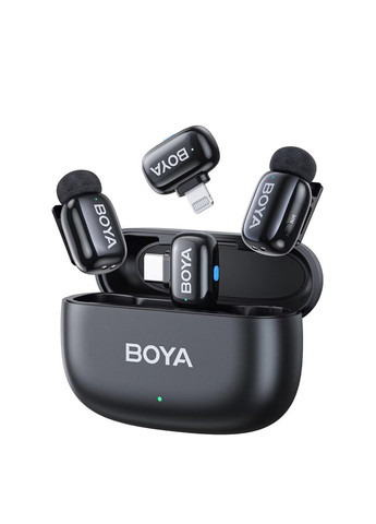 Переваги: Одночасне записування з 4 мікрофонів Чистий звук завдяки подвійному шумозаглушенню До 200 метрів стабільного з'єднання Заряджання під час записування До 18 годин автономної роботи Сумісність з iPhone, Android BOYA BY-V4U Бездротовий мікрофон на 4 петлочки для телефона iPhone Type-C — це розширене рішення для командної роботи, інтерв'ю, подкастів, стримів і знімань із кількома спікерами одночасно. Підтримує 4 незалежні канали із синхронним записом, а також обладнаний кліпсами з поворотом на 360°, що забезпечує гнучке кріплення. Бездротовий мікрофон на 4 петлі працює на частоті 2.4GHz, передаючи сигнал на відстань до 200 м без втрати якості. Завдяки шумозаглушенню у два етапи (вітрозахист і технологія One-Click Noise Cancelling) звук залишається чітким навіть у галасливих умовах. Зарядний кейс продовжує роботу до 18 годин, забезпечуючи автономність під час тривалих сесій. Крім того, роз'єм дає змогу заряджати смартфон прямо під час запису. Бездротовий мікрофон на 4 петлочки для телефона iPhone Type-C BOYA BY-V4U сумісний з iOS (включно з iPhone 15 через Type-C), Android-пристроями, ноутбуками. Комплектація До комплекту постачання BOYA BY-V4U входить чотири мікрофони, один приймач із роз'ємом Type-C, кейс для зберігання та заряджання, кабель Type-C. Технічні характеристики Сумісність iPhone 16/15, Android Порт під'єднання Type-C Передавання звуку цифрова 2.4 ГГц Радіус дії до 200 м (у разі прямої видимості) Частота дискретизації 16біт 48 кГц Співвідношення сигнал/шум понад 80 дБ Час роботи на одному заряді під час підзаряджання від кейса до 6 год до 18ч Шумозаглушення активне вимкнене Наскрізна зарядка телефона підтримується Розмір мікрофон/передавач кейс 62 × 18 × 10 мм 143 × 80 × 35 мм Вага мікрофон кейс заряджання 10г 160г Гарантія 12 місяців