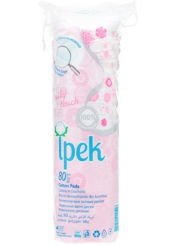 Бажаєте очистити шкіру обличчя від забруднень чи косметичних засобів, підправити свіжий манікюр або макіяж? Тоді вам точно не обійтися без щоденних помічників – маленьких ватних дисків! Ці практичні штучки завжди є в арсеналі гігієнічних засобів кожної леді. Klasik Cotton Pads турецького бренда Ipek – хороший вибір на користь чудової якості й бюджетної вартості. У прозорій поліетиленовій тубі на практичних шнурках, які затягуються, ватяні диски чудово зберігаються, не брудняться і не насичуються вологою, навіть якщо ви тримаєте їх у ванній кімнаті. Крім того, вироби виготовлені з повністю натурального матеріалу – екологічної бавовни. М'яка поверхня і спеціально оброблені прошиті краї не травмують шкіру й роблять ці диски дуже комфортними у використанні. Спосіб застосування: дістаньте диск з упаковки, нанесіть на нього очищувальний засіб і протріть обличчя.