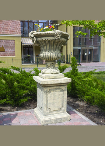 Масивна та широка бетонна ваза "Андромеда" стане чудовим вибором як для дачних ділянок, так і для парків або скверів. Ця ваза, з найбільшим діаметром чаші у 100 см та висотою 72 см, має міцну основу, прикрашену візерунками, та розширену чашу з бортиками, оздобленими унікальним орнаментом.