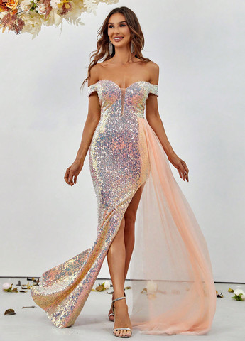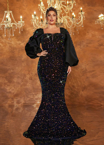 Сукня Green Love Lemonade має подвійну сітчасту панель з блискучими паєтками. Сукня має дизайн без спинки, контрастні паєтки ззаду і застібається на блискавку з високою лінією талії, розкльошеним подолом та довгою максимальною довжиною зі стандартною посадкою.