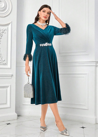 Орієнтовні заміри по готовому виробу: 42-44 (ОГ 78-92, ОТ 58-78, ОС до 96), 46-48 (ОГ 92-98, ОТ 60-80, ОС до 106), 50-52 (ОГ 100-115, ОТ 70- 90, ОС до 115, ширина руки зверху 41), 54-56 (ОГ 110-126, ОТ 75-100, ОС до 128, ширина руки зверху 45). ПАРАМЕТРИ МОДЕЛІ НА ФОТО:104-70-105 см. РОЗМІР МОДЕЛІ НА ФОТО:48. РІСТ МОДЕЛІ НА ФОТО:170см. Оздоблення – пір'я марабу, збоку розріз, застібка – блискавка. Позаду шнурується – цим регулюється приталеність. Тканина: італійська костюмна тканина (щільний, шовковистий матеріал, гладка структура, що ковзає на дотик).