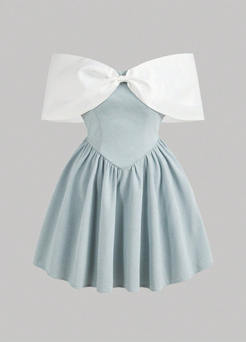 SHEIN MOD – Коротка сукня у стилі з А-силуетом вигідно підкреслює фігуру. Висока талія та розкльошений поділ. Сукня прикрашена бантом. Машинне прання або хімчистка.