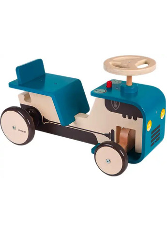 Цей дерев’яний трактор із синьо-зеленою кольоровою гамою та округлими формами був розроблений, щоб допомогти дітям віком від 12 місяців розвивати свої моторні навички під час штовхання. Це також допоможе їм навчитися контролювати свої рухи під час дослідження навколишнього світу. Він має вбудований гудок, який сигналізує про будь-яку небезпеку та сповіщає людей про прибуття дитини на ферму! Його 2 безшумні гумові передні шини та робоче кермо означають, що він може впоратися з будь-якими труднощами в сільській місцевості. Час починати – робота фермера ніколи не закінчена!