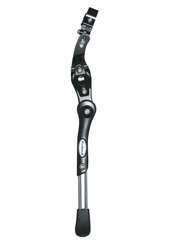 Велосипедна лапка, призначена для кріплення на заднє пір'я. Виготовлена з алюмінію, що забезпечує надійність та легкість. Лапка фіксується у двох точках, що забезпечує стабільність. Підходить для коліс розміром від 24 до 28 дюймів. Вага товару становить 374 грами.