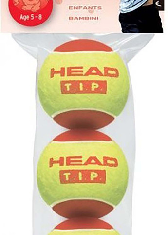 Призначені для гри у великий теніс. М'ячі HEAD T.I.P. — спеціально розроблені для тренування і змагань дітей. Тренувальні м'ячі необхідні для відпрацювання правильної техніки. Гарний контроль і задоволення від процесу тренування. HEAD T.I.P. Orange (жовто-помаранчевий) — на 50% менша швидкість відскоку. М'яч набагато більший від стандартного та м'якший, для більшого контролю. Упаковані в поліетиленовий пакет.