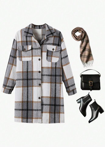 Колір Комбінований / Сезонність Демісезон / Стиль Кежуал / Декор Без декору / Матеріал верху Поліестер / Бренд SHEIN / Візерунок Клітинка / Довжина виробу Довге / Довжина рукава Довгий / Капюшон Без капюшона