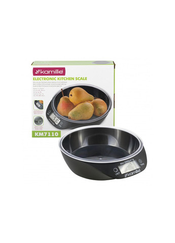Ваги кухонні Kamille KM-7108 Ваги кухонні Kamille KM-7108 - чудове доповнення до вашої кухні. Такі ваги дозволяють зважувати довгі продукти, наприклад спагетті або продукти у великогабаритній упаковці. Платформа виконана з міцного скла, абсолютно стійкого до дії кислот та лугів. Характеристики: Тип: кухонні ваги Тип управління: електронне Матеріал: скло Матеріал чаші: пластик Максимальне навантаження: 5 кг Розміри: 20х18.5 см Тип елементів живлення: 2 AAA Форма: кругла Одиниці виміру: грам, унція, фунт Колір чорний Упаковка: кольорова коробка Виробник: Kamille