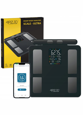 Аналітичні смарт-ваги модель Ultra від польського бренду 4FIZJO – це пристрій, який дозволяє контролювати результати тренувань, вагу тіла та стан здоров'я. Як відомо, вага тіла є універсальним показником та з її допомогою можна розрахувати безліч інших цікавих параметрів, які характеризують ваш організм. Традиційні ваги не завжди являються точними та не вміють інтерпретувати отримані результати. На відміну від них, наші інтелектуальні ваги автоматично аналізують склад тіла та дають можливість слідкувати за своїм прогресом і здоров'ям. Смарт-ваги Ultra від 4FIZJO виконані в мінімалістичному дизайні з використанням високоякісних матеріалів, таких як скло та пластик. Максимальна вага для виміру становить 180 кг з точністю до 100 г. Для кращої точності прилад оснащений 8 вбудованими електродами та 6 сенсорними панелями, що дозволяють вимірювати рівень жирової тканини, рівень м'язової маси, пульс, вміст води в організмі, рівень кісткової маси, індекс ІМТ, вага і калорії. Створюйте окремий профіль для кожного користувача та слідкуйте за прогресом. Важливо зазначити, що якість оцінки складу тіла відповідає рекомендаціям ВООЗ. Всі дані легко зчитувати з яскравого LCD екрану, крім того, є можливість синхронізувати ваги з мобільним додатком MovingLife через Bluetooth та модуль Wi-Fi. Додаток доступний для Android та iOS. Це практичне рішення дозволить точно обробляти дані про вашу фігуру та аналізувати склад тіла. Сучасні аналітичні ваги відомого бренду 4FIZJO – це незамінний помічник як для спортсменів, так і звичайних людей, які дбають про своє здоров'я. Вибирайте надійний пристрій із продуманою комплектацією та параметрами, що забезпечить ефективне використання та задоволення від результату.