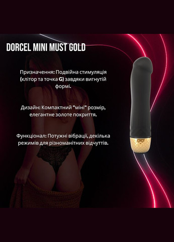 Відкрийте для себе концентровану розкіш та подвійне задоволення з вібратором Dorcel Mini Must Gold. Цей мініатюрний, але потужний вібратор у вишуканому золотому виконанні від престижного французького бренду Dorcel створений для точної стимуляції клітора та точки G, даруючи незабутні оргазми. Основні переваги списком: 🎯 Подвійна цільова стимуляція: Ергономічна форма з вигнутим кінчиком ідеально підходить для масажу точки G, а основа або спеціально розроблена частина вібратора – для інтенсивної стимуляції клітора. ✨ Розкішний золотий дизайн "Mini Must": Компактний, елегантний та статусний аксесуар, що втілює фірмовий шик Dorcel. "Must" – як незамінний атрибут насолоди. 💪 Потужні вібрації Dorcel: Незважаючи на міні-розмір, оснащений сильним мотором, що забезпечує глибокі та насичені вібрації для яскравих відчуттів. 💖 Преміальні безпечні матеріали: Виготовлений з високоякісного, безпечного для тіла матеріалу (зазвичай ABS-пластик з гладким золотим покриттям або силікон з золотими акцентами). 🔋 Перезаряджуваний та часто водонепроникний: Для зручності використання, економії та можливості розширити горизонти ігор (уточнюйте водонепроникність для конкретної моделі). Опис товару: Вібратор Dorcel Mini Must Gold – це втілення філософії "must-have" у світі інтимних аксесуарів від легендарного французького бренду Marc Dorcel. Цей мініатюрний, але надзвичайно ефективний вібратор у розкішному золотому дизайні створений для тих, хто цінує вишуканість, потужність та універсальність навіть у компактному форматі. Модель Mini Must Gold розроблена для забезпечення подвійної насолоди. Її ергономічний, злегка вигнутий кінчик ідеально підходить для точної та глибокої стимуляції точки G, тоді як тіло вібратора або його спеціально розроблена основа дозволяє одночасно або послідовно стимулювати клітор. Така універсальність робить його незамінним інструментом для дослідження різних типів оргазму. Незважаючи на свої компактні розміри, Dorcel Mini Must Gold оснащений потужним мотором, що генерує інтенсивні вібрації, доступні в декількох режимах. Це дозволяє вам налаштувати стимуляцію від ніжної прелюдії до вибухового фіналу. Виготовлений з преміальних, безпечних для тіла матеріалів з гладким золотим покриттям, цей вібратор не тільки виглядає розкішно, але й дарує приємні тактильні відчуття. Зазвичай він перезаряджається через USB, що робить його зручним супутником у подорожах. Dorcel Mini Must Gold – це ваш маленький секрет великої насолоди, що поєднує французький шик, інновації та неперевершену ефективність. Як обрати ідеальний компактний вібратор для подвійної стимуляції: Гід по світу мініатюрної розкоші Компактні вібратори, призначені для одночасної або послідовної стимуляції точки G та клітора, такі як Dorcel Mini Must Gold, є справжньою знахідкою для сучасних жінок. Вони поєднують дискретність, портативність та багатофункціональність, пропонуючи повноцінний досвід насолоди в мініатюрному виконанні, часто з акцентом на розкішний дизайн та преміальні матеріали. Що таке компактний вібратор для G-точки та клітора? Це невеликий за розміром вібратор, форма якого спеціально розроблена таким чином, щоб ефективно стимулювати як внутрішню точку G (завдяки вигнутому кінчику), так і зовнішній клітор (за допомогою тіла вібратора, його основи або спеціального невеликого виступу). Основні переваги: Універсальні