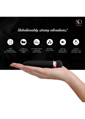 Стильная вибропуля So Divine в гламурном цвете под розовое золото снаружи и с одной, но достаточно интенсивной вибрацией внутри, несомненно приведет вас в восторг не только от своего вида, а еще и от ощущений во время игры. Заостренный кончик вибропули специально разработан для точечной стимуляции клитора, а гладкое покрытие из 100% безопасного пластика обеспечит приятный контакт с кожей. Мощная и миниатюрная, размером всего 7,6 см, вибропуля поместиться в любую сумочку или косметичку и будет всегда под рукой, когда вам понадобится быстрая, но интенсивная разрядка. Помимо стимуляции клитора, вибропуля отлично подойдет, и как первая секс игрушка для пары, ведь ею можно стимулировать практически любую эрогенную зону: шею, ключицы, соски, низ живота, внутреннюю сторону бедер, мошонку, промежность и область вокруг ануса. Перед первым и после каждого использования вибропулю важно помыть под проточной водой и обработать антибактериальным спреем. Как пользоваться вибропулей So Divine Rose Gold Halo Открутите колпачок и снимите внутренний красный диск, затем плотно закрутите крышку. Смажьте лубрикантом и направьте "нетерпеливый" кончик вибропули к чувствительным нервным окончаниям клитора. Включается и выключается вибропуля кратким нажатием на кнопку.