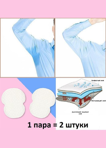 Вкладки гігієнічні для пахв. Підкладка одноразова від слідів поту 1пара (2 штуки) Вкладки від поту для одягу — це спеціальні прокладки або підкладки, які допомагають вбирати піт і запобігають появі плям на одязі. Вони виготовляються з м'якого та повітропроникного матеріалу, який не тільки вбирає вологу, але й забезпечує комфортне носіння. Вкладки від поту можуть використовуватися як щодня, так і під час занять спортом або іншими фізичними навантаженнями, щоб зберегти одяг в ідеальному стані. Вони також можуть бути корисні для людей із надмірним потовиділенням або в спекотливу погоду. Прокладки для пахв на щодень збережуть ваші речі свіжими та чистими, захистять їх від жовтих і білих слідів дезодоранту. ✓ Вони вбирають максимум вологи та рятують у разі гіпергідрозу (жовтовиділення). ✓ Прокладки для пахв виготовлені з дихаючого матеріалу, завдяки чому вони сприяють запобіганню подразненню на шкірі. ✓ Вкладки від поту мають універсальний розмір, непомітні під одягом. Підходять як жінкам, так і чоловікам. Хоч яким гарним і якісним був дезодорант, рано чи пізно, він викличе дискомфорт і невелике подразнення. Така реакція шкіри цілком природна, адже їй важко з кожним днем адекватно реагувати на хімічні речовини дезодоранту. Доситьформувати шкіру своїх пахв, почніть боротися потім безпечним способом, скориставшись вкладками в одяг. Вкладки гігієнічні для пахв одноразові від слідів поту на липкій основі. Виготовлені з мікрофібри найвищої якості, є ефективними, повітропроникними та надзвичайно всмоктувальними. Характеристики: 1 Матеріал: бавовняна мікрофібра Розмір: 8-9см х 12см, товщина 2мм Колір: білий; 2 Кількість — 1 пара (2 штуки); 3 Вкладки від поту одяг — це надійний засіб гігієни, заміна дезодорантів і антиперспірантів. Тепер захист від поту ефективний, нешкідливий, надійний і недорогий. Прокладки від поту підходять як для ошатного, так і для повсякденного одягу; 4 На роботі, на відпочинку, у поїздках — щоб знову відчути свіжість досить просто змінити стикер. Легко встановлюється — легко знімається; 5 Ефективно вбирає піт, а міцний фіксатор по краях запобігає протіканню, зберігає пахви сухими та комфортними впродовж усього дня. Легкі та портативні, практично невидимі, зберігають одяг у зоні пахв. Вологозахисний бар'єр запобігає потраплянню поту на одяг, зберігаючи його сухим. М'які та ніжні, утримують піт, швидко вбираючи його; 6 Як використовувати? 1. Зніміть клейкий лист із подушечки 2. Приклейте подушечку до внутрішньої сторони одягу 3. Широкий бік подушечки має бути приклеєний до внутрішньої сторони рукава 4. Вузька сторона подушечки має бути приклеєна до внутрішньої сторони сорочки (футболки) 5. Зніміть із тканини після використання. Вкладки гігієнічні були придумані не сьогодні. Доросле населення пам'ятає, як ще в епоху Радянського Союзу в продажу мали спеціальні тканини, які укладалися в одяг і пришивалися в зоні пахв. Такі «девайси» непогано увібрали піт, позбавляючи людину зайвої вологи під руками та захищаючи одяг від мокрих плям. Безперечними перевагами вкладок від поту є те, що ці вироби: Гіпоалергенні, у разі правильного використання не викликають шкірних подразнень. Ідеально оберігають одяг від «мокрих» плям і руйнівної дії поту. Дають змогу продовжити термін експлуатації улюблених речей — тепер не потрібно довго з