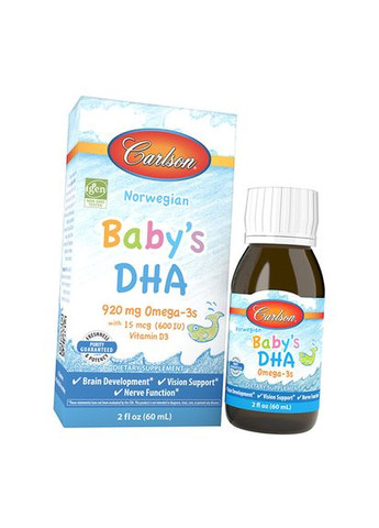 Крапельниця для полегшення вимірювання Покращена форма тригліцеридів Біологічна добавка Омега-3 Виготовлений з 100% арктичної печінки тріски Підтримка мозкової і візуальної діяльності молекулярно дистильований Кожна дитина потребує DHA DHA для немовлят розвиток мозку Розвиток здорової нервової системи візуальне розвиток Має крапельницю для зручного дозування, DHA може бути легко додана до їжі або питва вага Доза 2,2 – 4,5 кг 1.0 мл 5 – 9 кг 2.0 мл 9,5 – 11 кг 3.0 мл 12 – 14 кг 4.0 мл 14 – 16 кг 5.0 мл Розмір порції: 5 мл¹ Кількість порцій у пляшці: 12 Кількість на порцію % від добової потреби* Калорії 40 Усього жирів 4,5 г 15% * Насичений жир 0,5 г ** Холестерин 20 мг ** Вітамін A 40 мкг еквівалента активності ретинолу (RAE) 8% Вітамін D3 7,5 мкг (300 МО) 75% Усього жирних кислот омега-3 1050 мг ** ЕПК (ейкозапентаєнова кислота) 350 мг ** ДГК (докозагексаєнова кислота) 485 мг ** Інші жирні кислоти омега-3 215 мг ** * Відсоток від добової потреби для дітей віком до 12 місяців . ** Добову потребу не визначено. ¹ Рекомендації щодо використання вказані на звороті коробки.