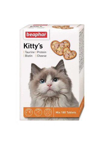 Комплекс вітамінів у вигляді ласощів «Кіттіс Мікс» з таурином і біотином (бежеві - зі смаком йогурту), з протеїном (рожеві - зі смаком риби) і з сиром (жовті). Таурин сприяє роботі серця, жовчного міхура, мозку і покращує зір. Біотин забезпечує здоров'я шкіри і блиск шерсті. Протеїн зміцнює організм тварини, а сир надає різноманітності її меню. На 1 кг ваги тварини давати від 1 до 4 таблеток щодня. Можна давати дорослим, вагітним та лактуючим тваринам, а також кошенятам віком від 6 тижнів. Не має обмежень по тривалості використання. Протипоказань немає.