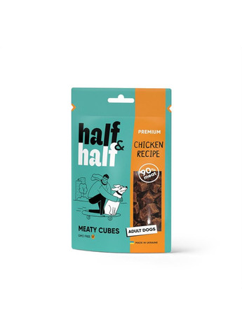 Додатковий корм для собак. М’ясні натуральні ласощі - ідеальне доповнення до основного раціону собаки. М’які шматочки дуже зручні для споживання маленькими та мініатюрними породами. Легкозасвоювані білки не навантажують систему травлення та чудово смакують. Курка оптимальна для смачного перекусу та здоров’я улюбленця. Кукурудзяне борошно покращує травлення, зміцнює судини та кістки. Без ГМО. Cклад: м’ясо та м’ясні інгредієнти (90 %, зокрема курка 75 %) кукурудзяне борошно, гліцерин харчовий, мінеральні речовини. Не містить ГМО. Поживні речовини: сирий білок - 26,0 %, сирий жир - 6,7 %, сира клітковина - 1,0 %, вологість - 21,0 %, сира зола - 3,0 %. Харчові добавки: вітамін А (3а672а) – 880 МО, вітамін D3 (3а671) – 710 МО, вітамін Е (3а700) – 15 мг, мідь (3b406) – 2,6 мг. Технологічні добавки: антиоксиданти. Енергетична цінність: 2,560 ккал/ 1 кг.