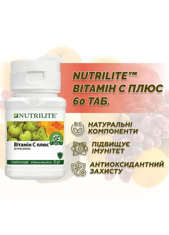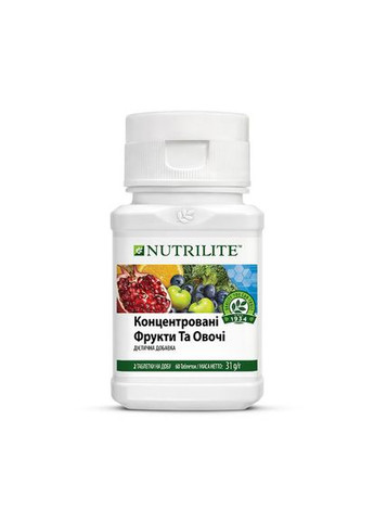 Nutrilite™ є брендом №1 у світі за кількістю продажів дієтичних добавок та вітамінно-мінеральних комплексів. Відбіть атаку вільних радикалів! Nutrilite™ Double X™ запускає захисні механізми, спрямовані на боротьбу із вільними радикалами: нейтралізує шкідливі частинки, діючи як антиоксидант; Активує внутрішній захист лише на рівні клітини, підвищуючи її опірність руйнівному впливу. Результати HPLC Це високоефективний метод поділу складних сумішей, який визначає типи речовин та їх кількість. СКЛАД: ТАБЛІТКА З ВІТАМІНами: карбонат кальцію, стабілізатори (мікрокристалічна целюлоза, поперечно-пов'язана карбоксиметилцелюлоза натрію, гуміарабік, гідроксипропілметилцелюлоза, агар, кальцієві солі жирних кислот), окис магнію, L-аскорбінова кислота жирних кислот ) , мальтодекстрин, нікотинамід, сукцинат D-альфа-токоферилової кислоти, кальцію D-пантотенат, сахароза, емульгатор (альгінат натрію), гороховий крохмаль, модифікований кукурудзяний крохмаль, кукурудзяний крохмаль, оксид цинку, на , бета-каротин, ефіри лютеїну, антиоксиданти (аскорбіл пальмітат, аскорбат натрію, альфа-токоферол, концентрат суміші токоферолів), ізолят протеїну сої, зволожуючий агент (гліцерин), лікопен (з томату, Lycopersiconesculentum), ретиніла , глазуруючий агент (карнаубський віск), D-біотин, селеніт натрію, ціанокобаламін. ТАБЛІТКА З МІНЕРАЛАМИ: карбонат кальцію, стабілізатори (мікрокристалічна целюлоза, поперечно-пов'язана карбоксиметилцелюлоза натрію, гуміарабік, гідроксипропілметилцелюлоза, пектин), оксид магнію, фумарат заліза, мальтодекстрін, речовина ), екстракт м'яти перцевої 0,9% (Menthapiperita), оксид цинку, концентрат петрушки 0,6% (Petroselinumcrispum), концентрат шпинату 0,6% (Spinaciaoleracea), глюконат міді, клітковина цукрової тростини, концентрат кресу водяного 0,3% (Nastur марганцю, кукурудзяний крохмаль, концентрат люцерни 0,2% (Medicagosativa), зволожуючий агент (гліцерин), хлорид хрому, молібдат натрію, глазуруючий агент (карнаубський віск), селеніт натрію. ТАБЛІТКА З ФІТОНУТРІЄНТАМИ: стабілізатори (мікрокристалічна целюлоза, поперечно-пов'язана карбоксиметилцелюлоза натрію, гідроксипропілметилцелюлоза, гуміарабік, сульфат кальцію, кальцієві солі жирних кислот), карбонат кальцію, екстракт розмарину 2 вишні ацероли 6% (Malpighia glabra), мальтодекстрин, L-аскорбінова кислота, екстракт куркуми 3% (Curcuma longa), порошок бурих водоростей 2% (Ascophyllum nodosum та Laminaria digitata), речовини, що запобігають злипанню (двоокис кремнію, магнієві) 1% (Vitis vinifera), концентрат апельсина 1% (Citrus sinensis), клітковина цукрової тростини, концентрат амли 0,6% (Phyllanthus emblica), екстракт чорної смородини 0,4% (Ribes nigrum), концентрат грейпфрута 0,3% Citrus paradisi), екстракт цибулі 0,3% (Allium cepa), концентрат чорниці 0,2% (Vaccinium corymbosum), екстракт бузини 0,2% (Sambucus nigra), сахароза, зволожуючий агент (гліцерин), концентрат лимона 0,1 % (Citrus limon), концентрат мандарину 0,1% (Citrus reticulata), гороховий крохмаль, кукурудзяний крохмаль, тригліцериди середнього ланцюга, глазуруючий агент (карнаубський віск), йодид калію, холекальциферол, антиоксидант (альфа-токоферол). БЕЗ ГМО