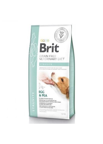 Brit GF Veterinary Diets Dog Struvite (яйце, індичка, горох и гречка) – повнораціонний ветеринарний сухий корм ветеринарна дієта для собак в період лікування та профілактики захворювань сечовивідних шляхів. Спосіб використання: Розчинення струвиту: З приводу будь-якого додаткового лікування та подальшого огляду обов'язково проконсультуйтеся з ветеринаром. Профілактика рецидиву утворення струвитів: Використовуйте Brit VD Struvite Dog на основі аналізу сечі протягом 6 місяців для запобігання рецидиву утворення струвитних каменів. Регулярно перевіряйте цільовий рН сечі (6,2-6,4). Склад: жовтий горох (25%), яйця (12%), зелений горох (12%), гідролізований протеїн з індички (11%), курячий жир (10%), гречка, м'якоть яблука, хлорид натрію (3%), жир лосося (3%), гідролізована куряча печінка (2%), мінерали, сушені водорості (0,5%, Ascophyllum nodosum), сульфат кальцію (0,4%, речовина для підвищення кислотності сечі), журавлина (0,3%, Vaccinium vitis-idaea), екстракт дріжджів (джерело маннан-олігосахаридів, 0,022%), β-глюкани (0,02%), фрукто-олігосахариди (0,02%), юка (Mojave yucca) (0,02%), обліпиха (0,015%). Поживні речовини: сирий протеїн 19,0%, сирий жир 16,0%, сира клітковина 2,8%, сира зола 6,8%, волога 10%, Омега-3 0,8%, Омега-6 2,3%, кальцій 0,6%, фосфор 0,4%, натрій 1,2%, магній 0,05%, Калій 0,4%, хлориди 1,8%, сірка 0,25%, гідроксипролін 0,26%, L-метіонін 0,8%. Харчові добавки на 1 кг: вітамін A (3a672a) 22 000 MO, вітамін D3 (E671) 650 MO, вітамін E (3a700) 1 000 мг, холінхлорид (3a890) 2 300 мг, біотин (3a880) 2,4 мг, вітамін B1 (3a821) 11 мг, вітамін B2 14 мг, нікотинамід (3a315) 94 мг, D-пантотенат кальцію (3a841) 25 мг, вітамін B6 (3a831) 7 мг, фолієва кислота (3a316) 2,4 мг, вітамін B12 0,16 мг, гідрат хелатного комплексу цинку з амінокислотами (3b606) 140 мг, гідрат хелатного комплексу заліза з амінокислотами (E1) 65 мг, гідрат хелатного комплексу марганцю з амінокислотами (E5) 75 мг, йодид калію (3b201) 4,2 мг, гідрат хелатного комплексу міді з амінокислотами (E4) 5 мг, органічна форма селену, що виробляється пивними дріжджами (Saccharomyces cerevisiae) CNCM I-3060 (інактивовані селенові дріжджі) (3b8.10) 0,2 мг, L-карнітин (3a910) 350 мг, L-метіонін (3c305) 6 000 мг, L-триптофан (3.4.1) 1 000 мг. Стабілізатори флори кишківника на 1 кг: Enterococcus faecium DSM 10663/NCIMB 10415 (4b1707) 1x109 КСО. Енергетична цінність: 3780 ккал/кг Вага собаки Добова норма 2 кг 35 г 5 кг 80 г 10 кг 140 г 15 кг 190 г 20 кг 230 г 25 кг 290 г 30 кг 320 г 40 кг 400 г 50 кг 490 г 60 кг 560 г 70 кг 630 г 80 кг 700 г