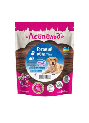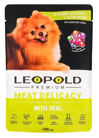Повнораціонний вологий корм в апетитному соусі для цуценят віком від 2 до 12 місяців. Забезпечує улюбленця необхідними вітамінами, мінералами і поживними речовинами, сприяє правильному зростанню і розвитку цуценяти, підтримує здоров'я його внутрішніх органів, а також шкіри і шерсть. Жирні кислоти Омега- 3 і Омега- 6, що входять до складу, сприятливо впливають на стан шкіри і шерсті, а також інтелектуальні здібності тварини, гарантуючи задоволення усіх потреб зростаючого організму. Компанія "Леопольд" використовує лише екологічні продукти у виробництві кормів, які не містять ароматизаторів, барвників і консервантів.