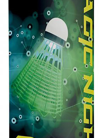 Завдяки нещодавно розробленим чарівним нічним світлодіодним воланам для бадмінтону, Тalbot Torro Shuttlecock Magic Night LED висвітлює ніч. 3 міцних світлодіодних пластикових волан (білий і жовтий) з вимикачем світлодіодного освітлення всередині. Біла кулька світиться зеленим кольором, жовта кулька змушує ніч світитися червоним кольором. Час горіння – близько 48 годин. У прозорому банку. Увага: не викидайте кульки разом із побутовими відходами.