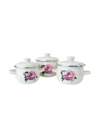 Каструлі зі скляною кришкою сферичні: 1,5л- 1шт, 2,5л- 1шт, 3,5л- 1шт. Підходить для всіх видів плит. Емальований посуд може використовуватися для приготування і зберігання будь-яких страв, на всіх видах плит (звичайних газових, керамічних, електричних і індукційних).