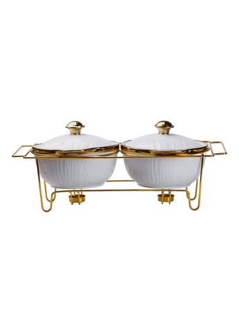Керамічна мармітниця з трьома секціями по 1,5 л Ця витончена мармітниця з білої кераміки стане вдалим поєднанням стилю та практичності на вашій кухні. Завдяки трьом окремим ємностям по 1,5 літри, ви зможете одночасно подавати різні страви — гарячі, гарніри чи соуси — не змішуючи смаки та аромати. Ідеально підходить для святкових застіль, фуршетів чи сімейних обідів. Сучасний дизайн у прямокутній формі доповнений золотистою металевою підставкою, яка додає не лише вишуканого вигляду, а й функціональності — підігрів підтримує оптимальну температуру страв протягом тривалого часу. Скляні кришки дозволяють зручно стежити за вмістом без необхідності відкривання. Кожна секція виготовлена з високоякісної термостійкої кераміки, яка рівномірно прогріває їжу та зберігає тепло. Такий посуд не вбирає запахи, легко миється і безпечний для здоров’я. Переваги товару: 3 окремі керамічні ємності — ідеально для подачі кількох страв Підігрів — зберігає температуру їжі на столі Скляні кришки — контроль без втрати тепла Золота металева підставка — витончений акцент інтер’єру Термостійка та екологічна кераміка — безпечне сервірування Практичний об’єм — по 1,5 л у кожному контейнері Характеристики: Матеріал ємностей: кераміка Матеріал підставки: метал Кришки: термостійке скло Кількість секцій: 3 Об’єм кожної секції: 1,5 л Загальний розмір: 68 × 33 × 17 см Колір: білий Вага: 7,62 кг Керамічна мармітниця 3×1,5 л — це не просто посуд, а стильне рішення для подачі теплих страв, яке перетворює звичайне застілля на справжнє свято.
