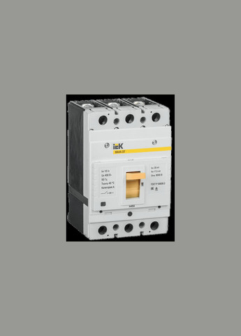 Автоматичний вимикач ВА88-35 3Р 250А 35кА з електр. розчіпл. MP211 УEK, SVA31-3-0250-U Автоматичні вимикачі ВА88 призначені для проведення струму в нормальному режимі та відключення струму при коротких замиканнях, перевантаженні, неприпустимих зниженнях напруги, а також для оперативних включень та відключень ділянок електричних ланцюгів та розраховані для експлуатації в електроустановках з номінальною робочою напругою до 400 В та на номінальні струми від 12,5 до 1600 А. Автоматичні вимикачі з електронним розчіплювачем забезпечують захист від перевантаження та короткого замикання за допомогою електронного розчіплювача надструмів. Це дозволяє забезпечити високу надійність, точність спрацьовування та незалежність від навколишніх умов. Електронний розчіплювач не потребує окремого живлення та гарантує правильну роботу захисту при струмі навантаження не менше 15% від номінального навіть за наявності напруги лише в одній фазі. Блок захисту включає три трансформатори струму, електронний модуль і відключає електромагніт, який впливає безпосередньо на механізм вимикача. Трансформатори струму, встановлені всередині корпусу розчіплювача, забезпечують електроживлення електронної схеми розчіплювача та виробляють сигнали, необхідні для виконання функції захисту. Захисні характеристики (уставки спрацьовування) вибираються споживачем безпосередньо на передній панелі вимикача установкою DIP-перемикачів згідно з наведеною мнемосхемою. Завдяки широкому діапазону регулювання уставок електронний розчіплювач МР211 придатний для всіх розподільних мереж, в яких потрібна надійність і точність спрацьовування. Номінальний струм, А 250 Кількість полюсів 3 Номінальна відключаюча здатність Icu при 400 В 50 Гц, кА 35 Номінальна робоча напруга, В 400 Тип виробу/компонента Вимикач автоматичний у литому корпусі Втрати енергії, Вт 150.0 Кількість допоміжних перемикаючих контактів 0 Моторний привід вбудований Ні Тип підключення силового електричного ланцюга Гвинтове з'єднання Частота мережі, Гц 50 Ширина, мм 105.0 Висота, мм 170.0 Глибина, мм 135.0 Номінальний тривалий струм Iu, А 250 Діапазон уставки струму розчеплення, А 375...3000 Діапазон регулювання без затримки спрацьовування розчіплювача короткого замикакання, А - Конструкція приладу Вбудований пристрій розширення Підходить для монтажу на DIN-рейку Ні Кількість допоміжних нормально замкнутих-НЗ контактів 0 Кількість допоміжних нормально розімкнених - НВ контактів 0 З розчепленням під напругою Так Вид підключення головного електричного ланцюга Інше Тип елемента керування Тумблер Моторний привід - додатково Так Ступінь захисту - IP IP20 Номінальна імпульсна напруга, що витримується, кВ 8 Номінально робоча найбільша відкл. здатність Ics, кА 25 Наявність електронного розчеплювача Так Номінальна напруга, В 400...400