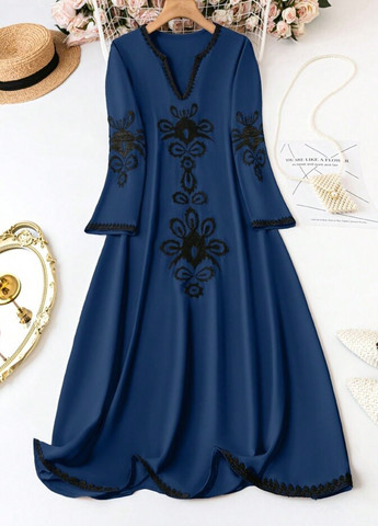 Колір Темно-синій / Матеріал Поліестер, Льон / Приналежність Жінкам / Довжина виробу Міді та нижче коліна / Довжина рукава Довгий