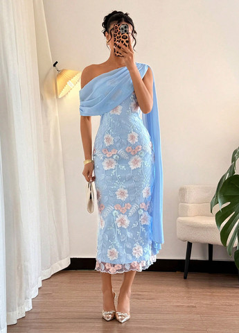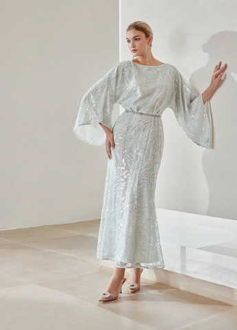 Колір Світло-блакитний / Приналежність Жінкам / Довжина виробу Максі / Довжина рукава Довгий