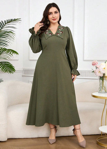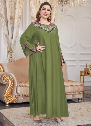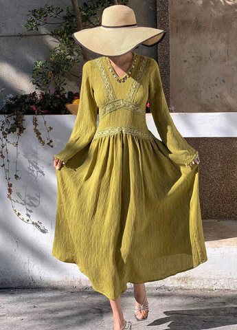 Колір Хакі / Матеріал Льон / Приналежність Жінкам / Довжина виробу Максі / Довжина рукава Довгий