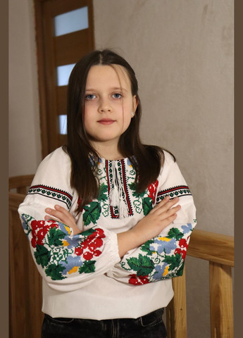 Автентична дитяча вишиванка "Марічка" виготовлена зі 100% натуральної бавовни. Ця яскрава модель поєднує традиційну українську вишивку з комфортом та практичністю для юних патріотів. Особливості моделі: - Яскравий квітковий орнамент з червоними ягодами та зеленим листям - 100% натуральна бавовна — м'яка та гіпоалергенна - Доступні розміри: 116, 122, 128, 134, 140, 146, 152, 158, 164 - Вільний крій з широкими вишитими рукавами - Традиційний декор з чорною окантовкою - Зручні білі китиці на горловині Вишиванка "Марічка" стане чудовим подарунком для дівчинки на будь-яке свято чи особливу подію. Ідеально підходить для шкільних виступів, національних святкувань та повсякденного носіння. Виріб легкий у догляді, зберігає яскравість кольорів після прання. Дбайливе ставлення забезпечить тривалу експлуатацію.