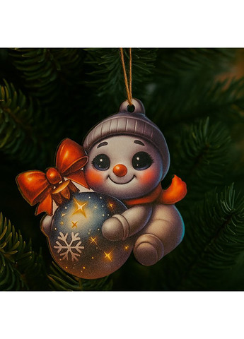 Декоративна іграшка “Сніговичок” Сніговичок у шарфику – чарівна новорічна іграшка, що дарує святковий настрій та нагадує про зимові дива. Його усміхнене обличчя, яскравий шарфик і капелюшок додають тепла навіть у найлютіші морози. Сніговичок стане прекрасною прикрасою ялинки, святкового інтер’єру чи милим подарунком для рідних. Особливості: фанера з дерева берези 2 мм; яскравий принт; зручний отвір для підвішування; підходить для ялинки, гірлянди чи настінного декору. Ширина 8 см, висота 8 см.