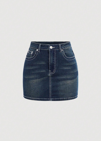 Джинсова спідниця має vintage дизайн. Вона включає застібку-блискавку та гудзик. Спідниця має похилі кишені та оздоблення заклепками. Високоеластична тканина забезпечує зручну посадку. Природна лінія талії підкреслює силует.