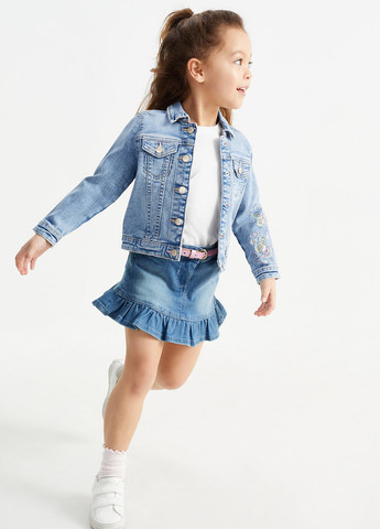 Джинсова спідниця для дівчинки, А силует. Застібується на ґудзик. Спідниця без підкладки. Рекомендується прати у пральній машині.