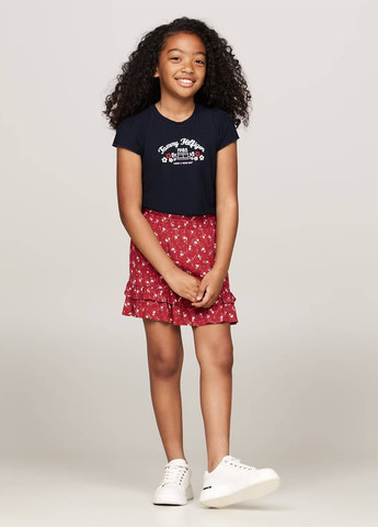 Спідниця для дівчинки Y-CLU YB20462 чорна в клітинку з зеленою брошкою