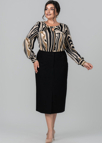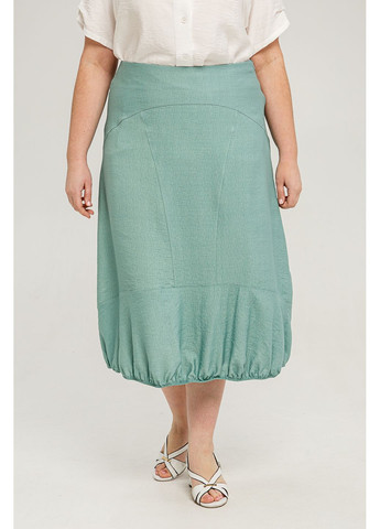 Спідниця клешена на поясі. Пояс притачний, застібка на бічну блискавку та гудзик з петлею по центру. Тканина щільна, м'яка, низька розтяжність.