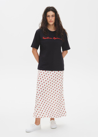 Спідниця-міді на резинці. На моделі розмір S. Параметри моделі: 93/72/102 см, зріст 180 см. Колір виробу на фото може відрізнятися від реального.