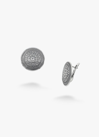 Сережки етнічні срібні з підвісками Пейстра mini 925 — гармонія традиційного орнаменту та витонченого стилю Ці вишукані етнічні сережки виготовлені зі срібла 925 проби та прикрашені круглими підвісками діаметром 19 мм із рослинним орнаментом і квітковим мотивом у центрі. Тонка деталізація та плавні лінії візерунка роблять прикрасу виразним і наповненим змістом — символіка квітки асоціюється з оновленням, жіночою енергією та природною гармонією. Надійний англійський замок забезпечує комфортну посадку та безпечну фіксацію. Загальна вага пари — 6.16 грама. Етнічні срібні сережки Пейстра mini стануть яскравим акцентом у повсякденному або богемному образі, підкреслять смак та індивідуальність. Ідеальні для шанувальників етностилю, символічних прикрас і виробів із характером.
