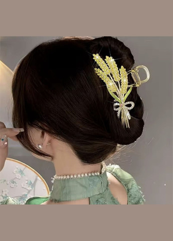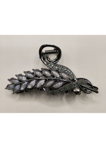 Металева заколка-крабік колосок темного кольору з камінцями. Добре тримає волосся. Розмір 11х5 см.