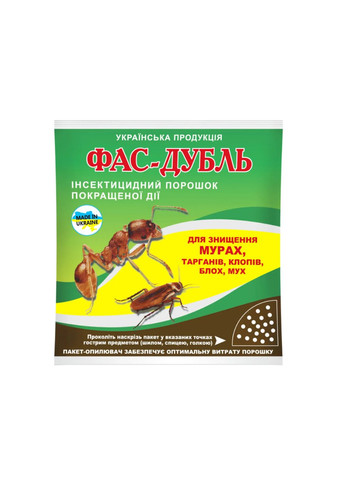 Клас небезпеки - 4 (малоопасное з'єднання) .Способ застосування • Для знищення мурах обробіть шляхи їх пересування і місця скупчення. • Для знищення тарганів обробіть плінтуси, щілини в підлозі, водопровідні та опалювальні труби, місця навколо раковин і сміттєпроводів, вентиляційні віддушини тощо. • Для знищення клопів і бліх обробіть задні стінки диванів, шаф, Зворотну сторону матраців і килимів, килимки та підстилки тварин. • Для позбавлення від мух обробіть місця скупчення їх личинок: вигрібні ями, сміттєпровід і пр.После обробки через 3-6 годин препарат змийте мильно-содовим розчином, видаліть з меблів пилососом, килимки ретельно вибийте. У місцях, недоступних для людей і тварин, препарат бажано залишити на 1-2 месяца.Для профілактики проводите обробку кожні 2-3 месяца.Норма витрати препарату 2-3 г / м2.Одного пакета 125 грам достатньо для обробки 40-60 м2 приміщень .Храніть окремо від харчових продуктів і ліків, в місцях, недоступних для дітей і домашніх тварин.