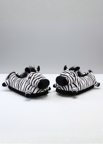 Зручні тапочки для дому зі смугастою 3D-зеброю. М’який плюш приємний до шкіри та добре утримує тепло. Аплікація з вушками та гривою надійно пришита. Підошва текстильна з антиковзними крапками забезпечує стабільність на гладких підлогах. Легкі та тихі під час ходи.