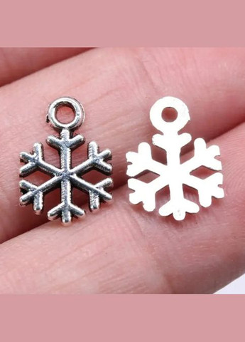 Фігурна металева підвіска (біжутерний шармик) у формі сніжинки. Для створення прикрас, брелоків, підвісок. Розмір: 15х10 мм. Матеріал: металевий сплав. Ціна вказана за 1 штуку. Металева підвіска (шарм, кулончик) для біжутерії — це декоративний елемент, виготовлений з металевого сплаву. Вона має фігурну форму та оснащена петелькою для легкого кріплення до виробу. Поверхня біжутерної підвіски може бути гладкою або з детальним рельєфним візерунком, що додає оригінальності прикрасі. Використання: Шармики для біжутерії ідеально підходить для створення браслетів, кольє, сережок, брелоків або декоративних підвісок. Їх також використовують у скрапбукінгу, виготовленні книжкових закладок, листівок та інших виробів ручної роботи. Завдяки компактному розміру та універсальному дизайну, підвіска-шарм прекрасно поєднується з іншими елементами виробу та біжутерною фурнітурою. Це практична й стильна деталь, що надає прикрасам та аксесуарам завершеного вигляду й індивідуального характеру.